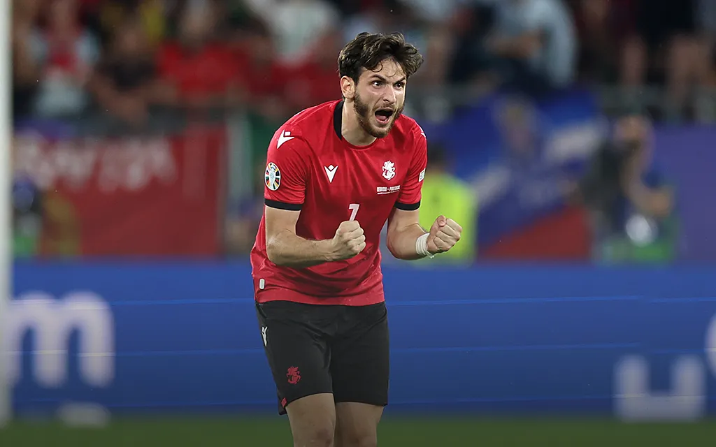 Сборная Грузии уже добилась невероятного успеха на этом чемпионате Европы. В свой дебютный крупный турнир в истории подопечные Вилли Саньоля вышли в плей-офф. На групповом этапе Евро-2024 главными героями Грузии, помимо забившего решающий гол в ворота Португалии Хвичи, стали голкипер Георгий Мамардашвили (20 сейвов за три игры) и нападающий Жорж Микаутадзе, забивший по голу в каждом матче группового этапа соревнований.