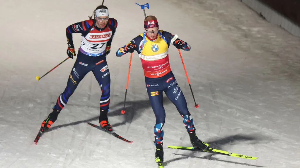 Команда Франции, в составе которой выступали Кентен Фийон Майе и Лу Жанмонно, прошла отведённую дистанцию за 36 минут 21,7 секунды, допустила три промаха на огневых рубежах и избежала штрафных кругов.