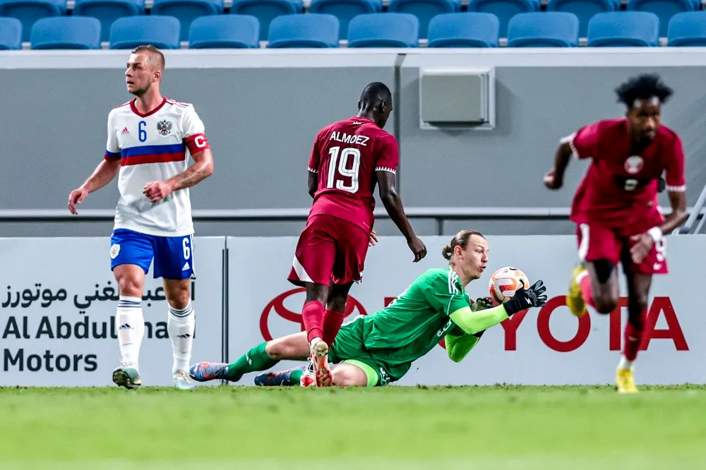 И первые 15 минут дали надежду на то, что гости одной из арен, принимавших чемпионат мира – 2022, покажут яркий и результативный футбол. Сборная России сразу же завладела инициативой и насела на ворота Мешаала Баршама. К тому же катарцы, которых отчаянным гулом поддерживали болельщики, пусть и не сумевшие заполнить трибуны так, чтобы пустоты не бросались в глаза, в дебюте встречи выглядели откровенно растерянными.