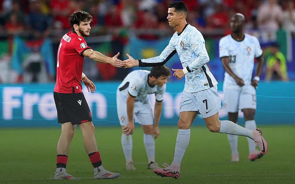 Грузия шумит – их любимцы совершили чудо: обыграли сборную Португалии во главе с Криштиану и вышли в плей-офф Евро с первой же в истории национальной команды попытки. Кварацхелия, признанный MVP матча, отпраздновал своеобразно: в футболке Роналду. На самом деле всё объяснимо: спортивные мечты Хвичи тесно переплетены с легендарным португальцем – игроки виделись ещё в 2013 году.