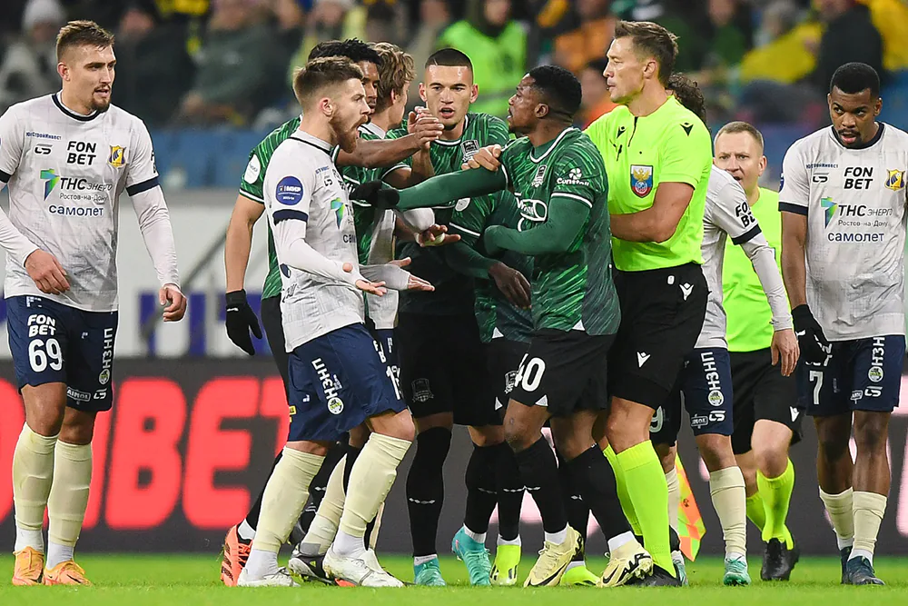И всё бы ничего, но ещё один ждал его буквально через четыре минуты после перерыва. И вновь футболист схлопотал глупейшую карточку. Зачем нужно было отмахиваться от Хорена Байрамяна – непонятно, а вот «Краснодар» потерял одного из лидеров атаки. Кстати, Байрамян отомстил своему обидчику и на поле. Именно его передача стала голевой, а Мохеби оформил дубль. К чести «быков», даже вдесятером они рук не опустили и смогли отыграть один мяч усилиями Джона Кордобы. Но, откровенно говоря, не показывал «Краснодар» той игры, которая позволяет конкурировать с «Зенитом». Итог южного дерби – 2:1, «Ростов».