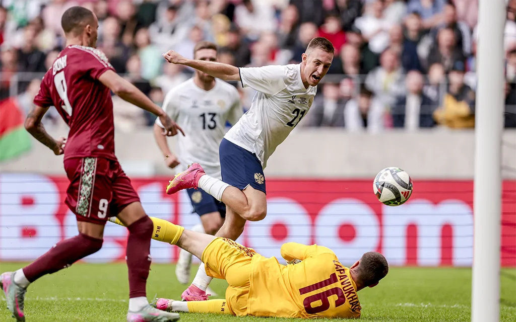 Матч между Россией и Беларусью завершился победой коллектива Валерия Карпина со счётом 4:1. Гладышев отметился четырьмя забитыми мячами.