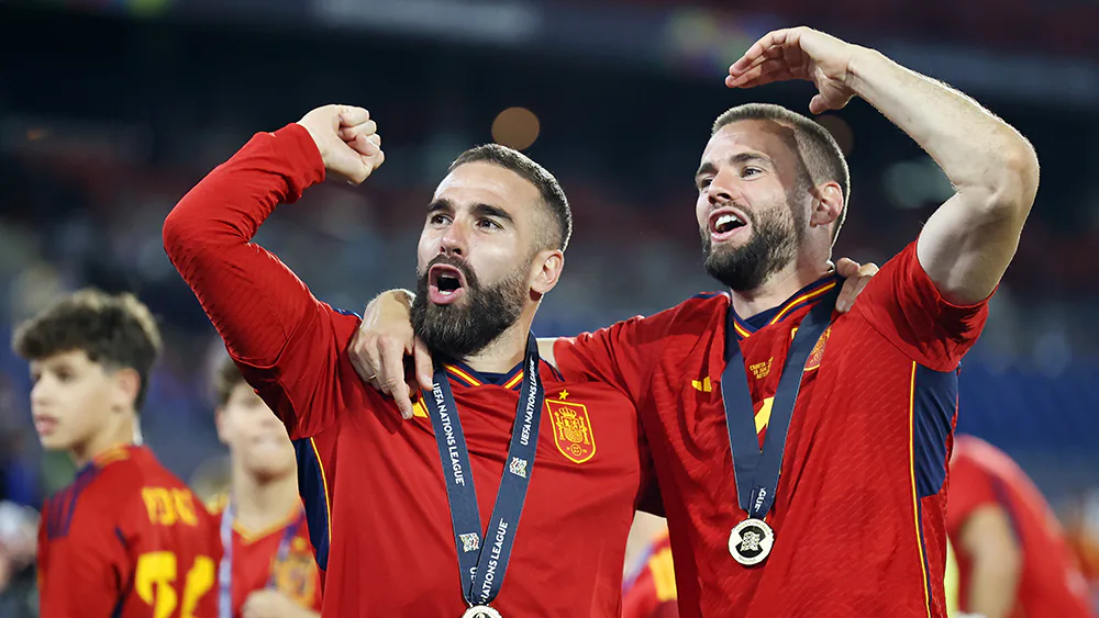 Защитники: Эмерик Лапорт («Аль-Наср»), Дани Карвахаль («Реал» Мадрид), Хесус Навас («Севилья»), Пау Кубарси («Барселона»), Робен Ле Норман («Реал Сосьедад»), Дани Вивиан («Атлетик»), Алехандро Гримальдо («Байер»), Марк Кукурелья («Челси»), Начо Фернандес («Реал» Мадрид)