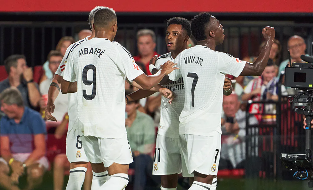В перерыве четыре звезды мадридского клуба — Беллингем, Мбаппе, Винисиус и Родриго — обсуждали тактику на второй тайм в подтрибунном помещении.