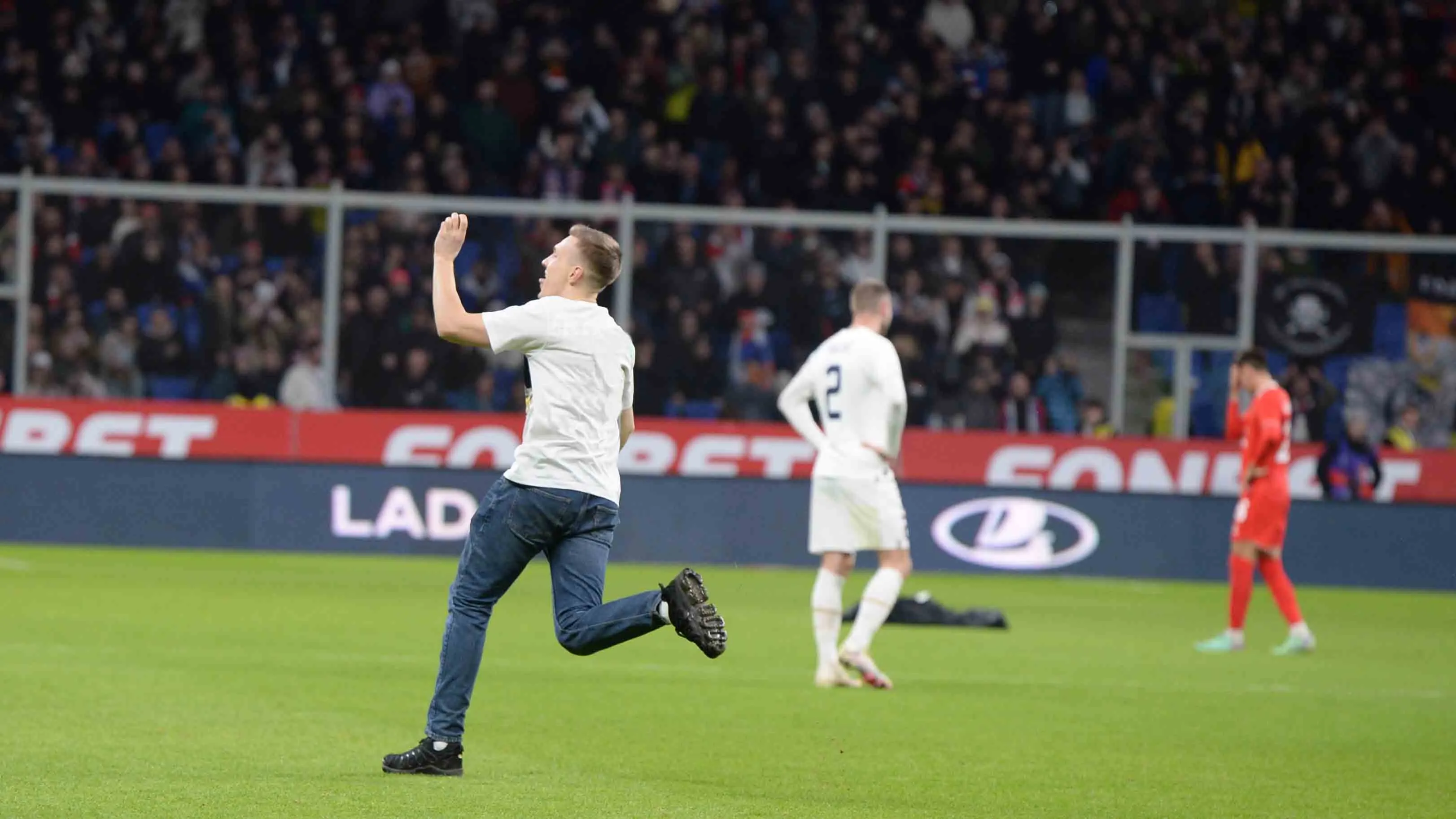 Выбежавший на поле в матче Россия – Сербия болельщик получил 13 суток ареста