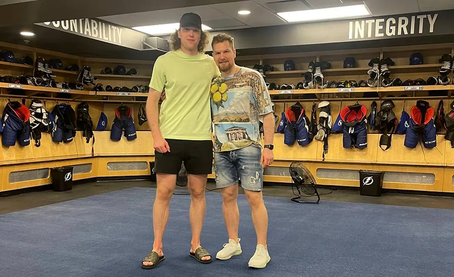 Алексей Василевский посетил раздевалку «Тампы-Бэй» вместе с сыном и братом Андреем: фото