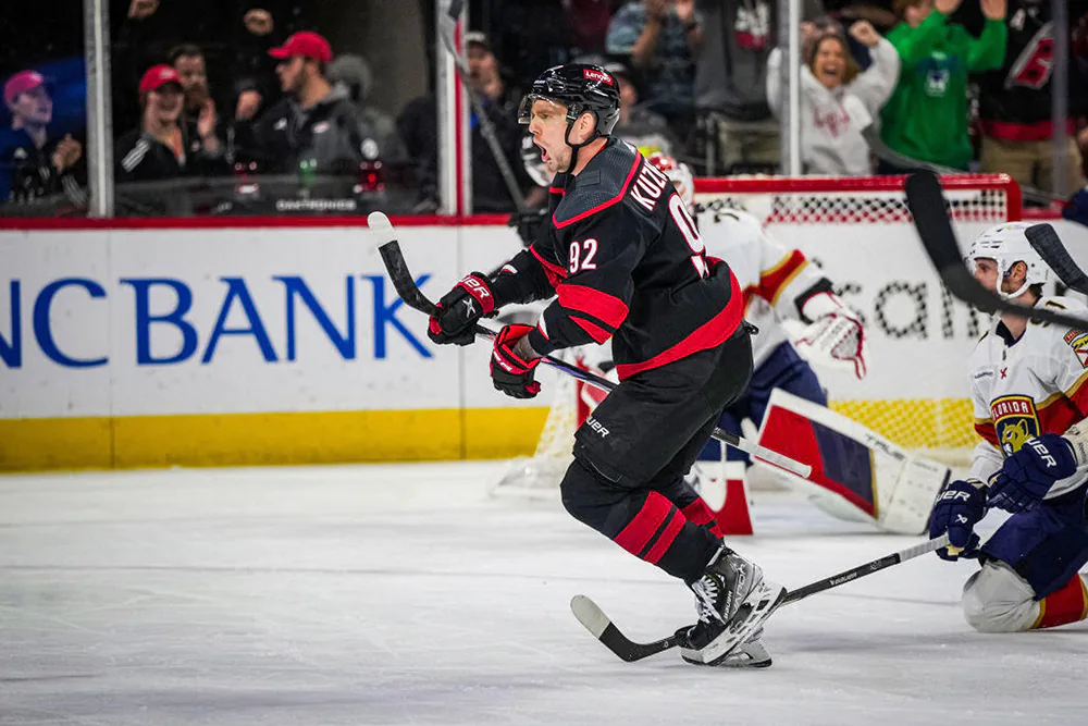 В сезоне-2023/2024 Евгений Кузнецов выступал в Национальной хоккейной лиге за «Вашингтон Кэпиталз» и «Каролину Харрикейнз». В 73 играх он набрал 30 очков по системе гол+пас (12+18).