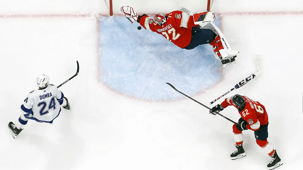 За шесть минут до конца второго периода Бобровский совершил зрелищный сейв, отразив бросок Мэттью Дамба из «Тампы», который наносил удар по сути в пустые ворота. Российский вратарь, в прыжке и спиной к льду, отбил шайбу левой рукой, показав невероятную быстроту реакции.