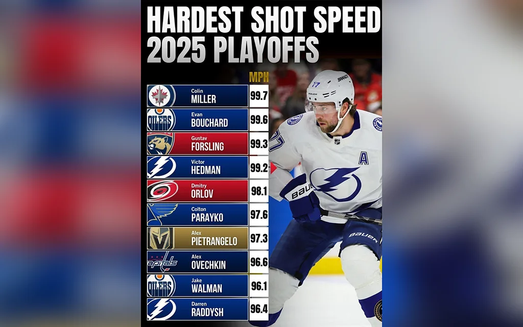Первое место в рейтинге досталось защитнику «Виннипег Джетс» Колину Миллеру. Его бросок был зафиксирован на отметке 99,7 мили в час (160,5 км/ч).