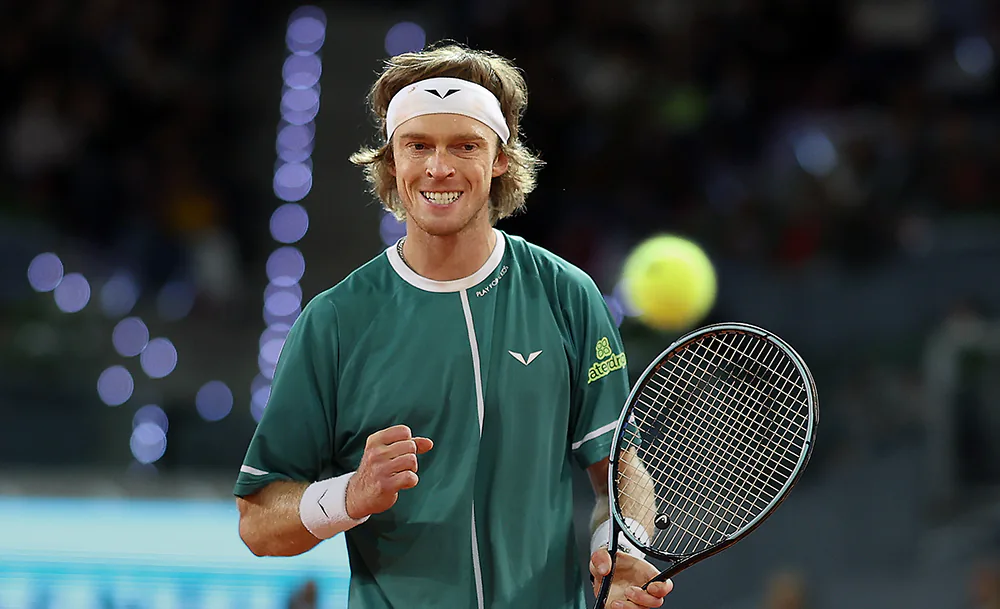 Все очень быстро развивалось на корте. Хоть и нервничал россиянин, но розыгрыши брал исправно — особенно на своей подаче (5:1). Немного сократил отставание Алькарас (5:2), но Андрей сделал шикарный укороченный, а потом вынудил Карлоса ошибиться. Таким образом, Рублёв вышел в полуфинал «Мастерса» в Мадриде — 4:6, 6:3, 6:2.